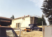 Foam sealant was used to seal and insulate the structural steel roof framing to prevent air leakage, condensation, and thermal bridging where possible. This work was coordinated with the replacement of the gallery skylights. The new underground art storage facilities beneath the new plaza (shown here under construction) and in the basements of the two 1965 pavilion addition wings were insulated with 3" of closed-cell polyurethane foam (R=21, perm <1). The undersides of the recessed first floor entry slabs were insulated with four inches of spray-applied foam (R=28, perm<.8).
